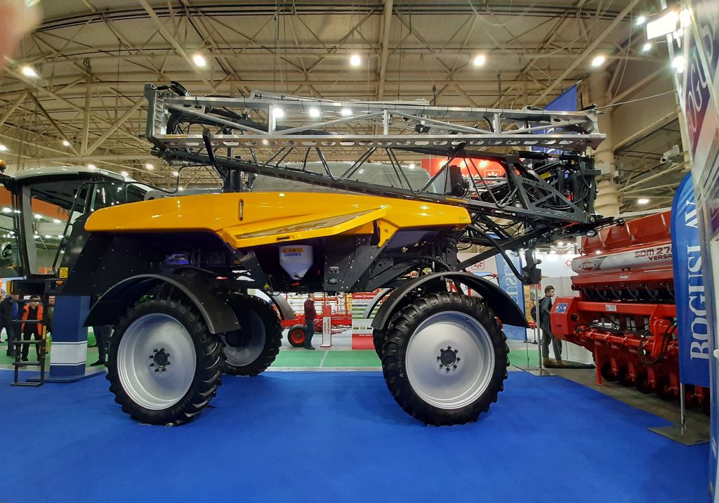 На виставку «Зернові технології 2020», у якій ми щорічно беремо участь, цього разу привезли дві самохідні машини. Самохідний обприскувач IBIS 3000-24 – модель з об’ємом бака 3150 л, шириною захвату штанги 24 м, із п’ятьма можливими варіантами встановлення ширини колії, дорожнім просвітом 1,8 м, що дозволяє обробляти високорослі культури, як-от кукурудза, соняшник і ріпак. Більш потужна машина – самохідний обприскувач MAF 4200 з об’ємом бака 4600 л, двигуном потужністю 238 к.с. і штангою зі шириною захвату 36 м.