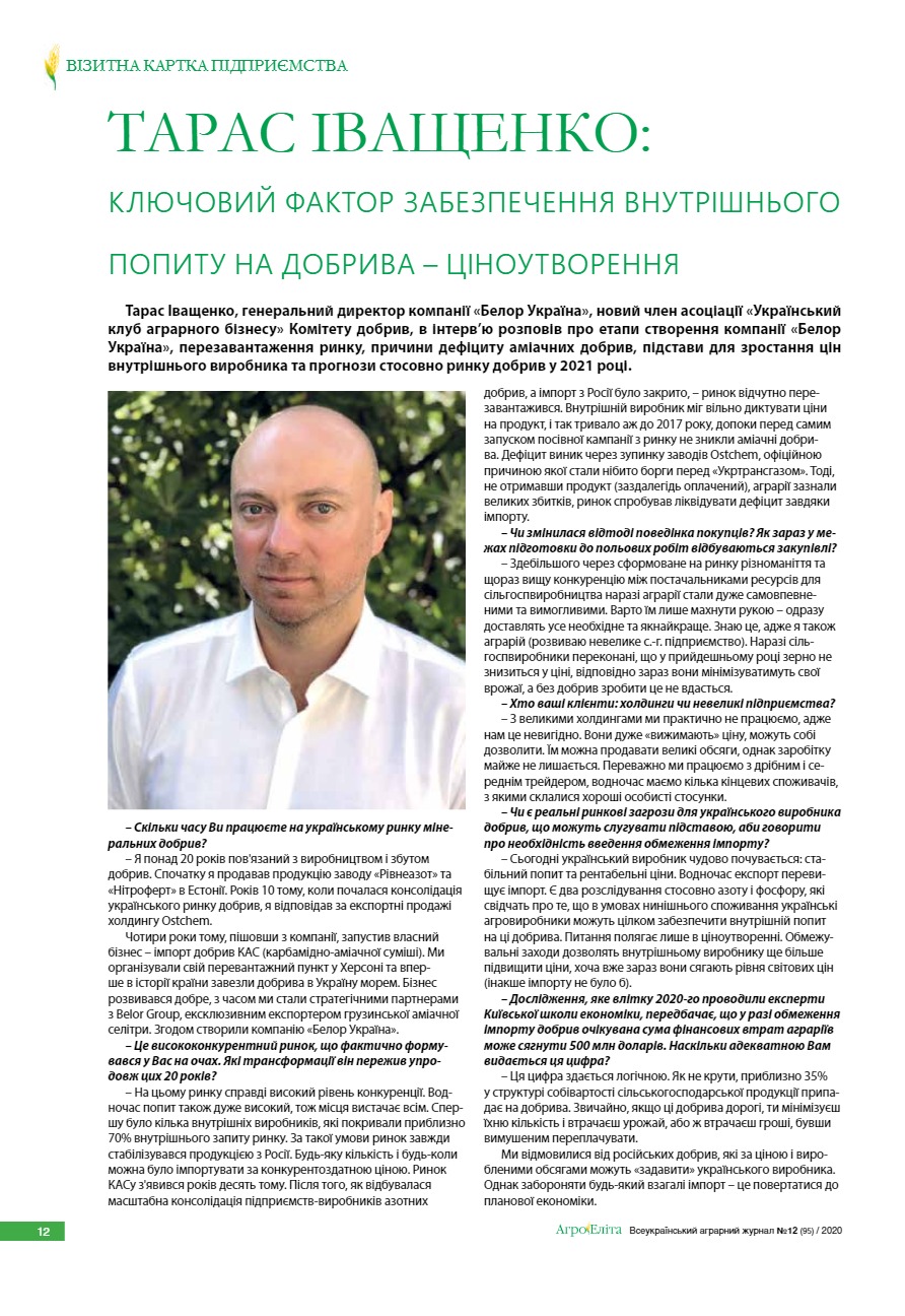Тарас Іващенко: ключовий фактор забезпечення внутрішнього попиту на добрива – ціноутворення