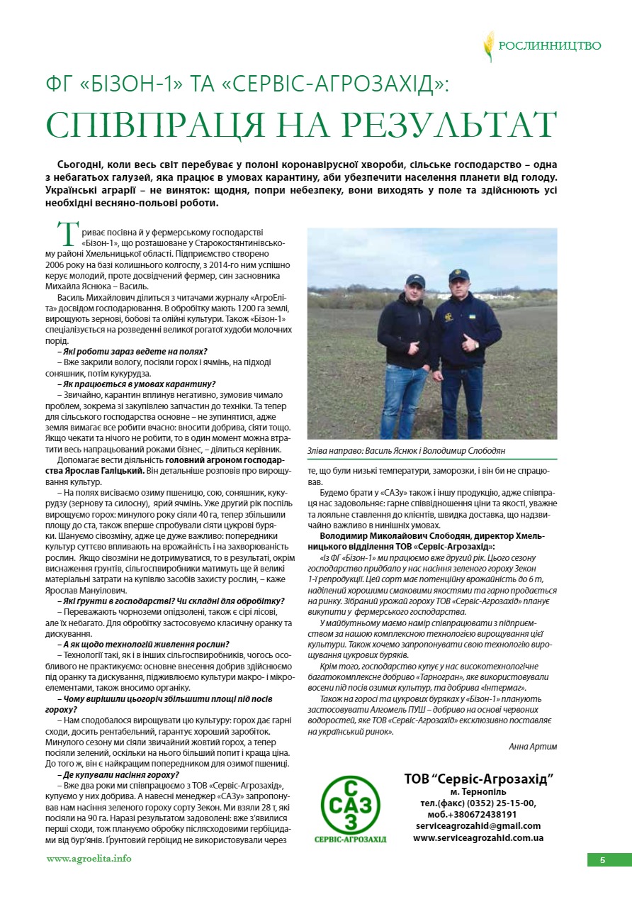 ФГ «Бізон-1» та «Сервіс-Агрозахід»: співпраця на результат