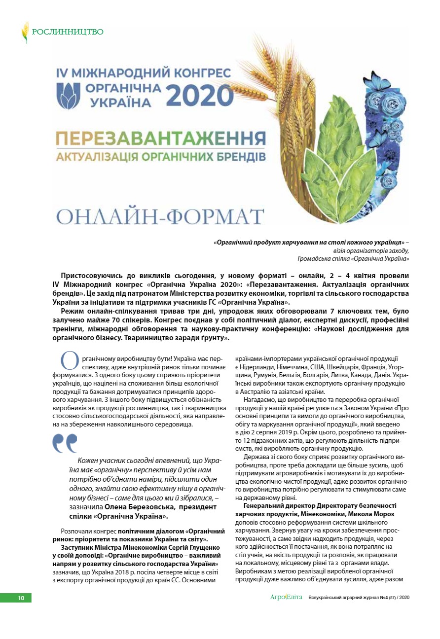 IV Міжнародний конгрес «Органічна Україна 2020». Онлайн-формат