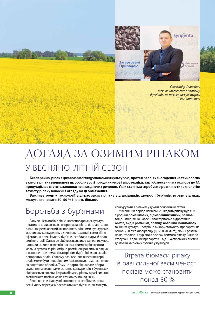 Догляд за озимим ріпаком у весняно-літній сезон