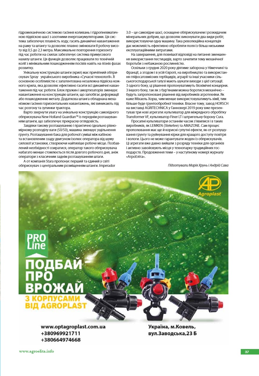 Новітні рішення у захисті рослин. Обприскувачі