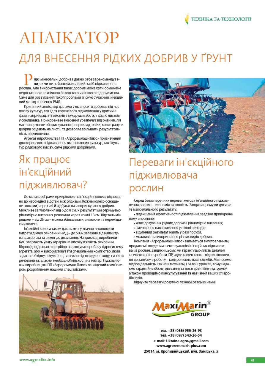 Аплікатор для внесення рідких добрив у ґрунт
