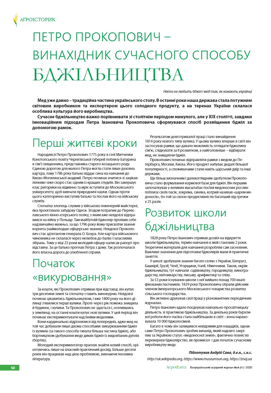 Петро Прокопович – винахідник сучасного способу бджільництва