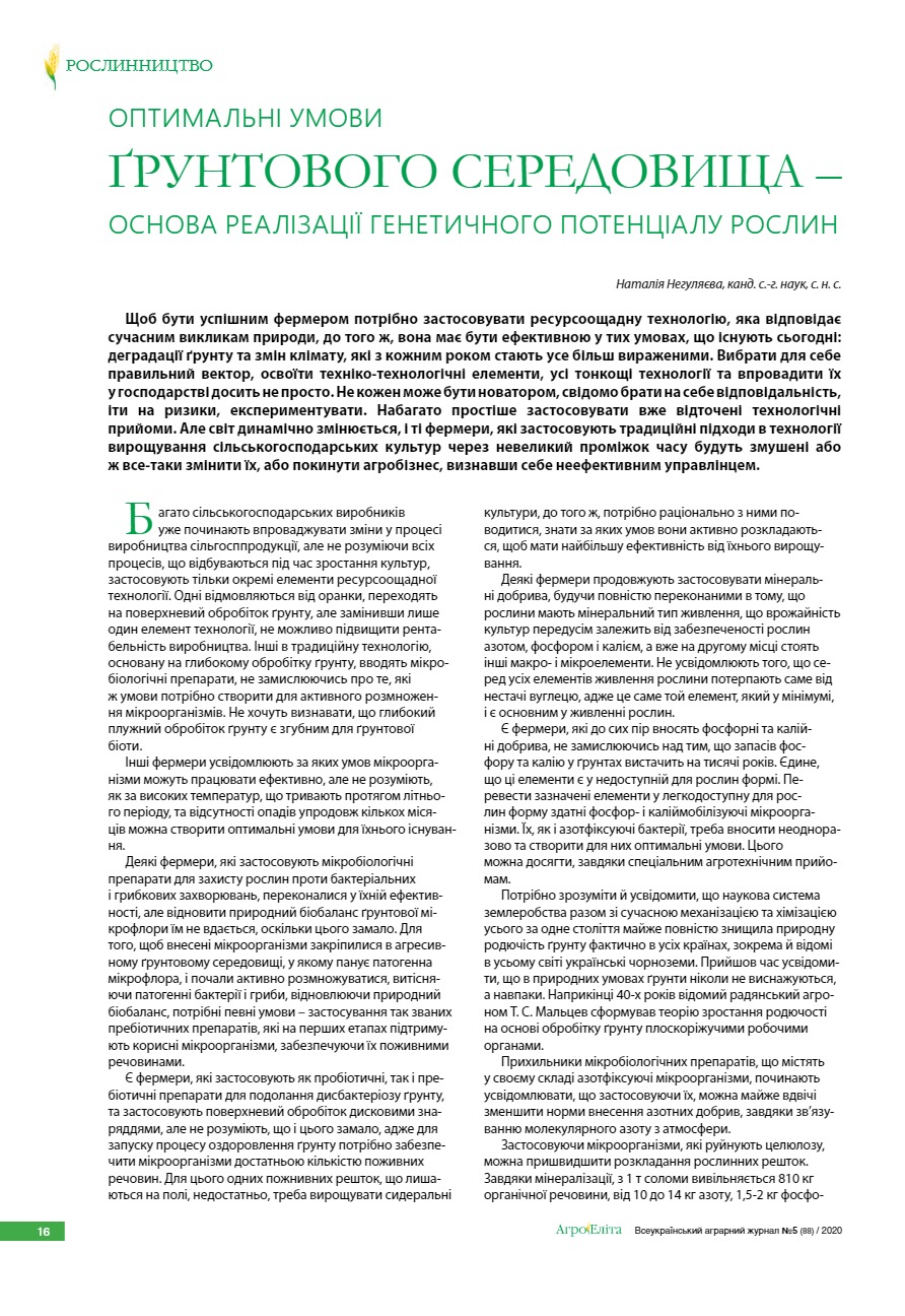 Оптимальні умови ґрунтового середовища, як основа реалізації генетичного потенціалу рослин