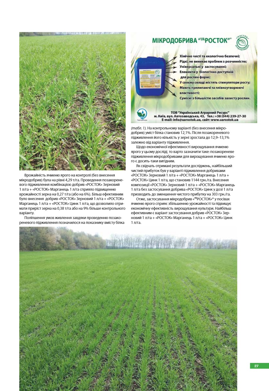 Ефективність застосування мікродобрив «УАРОСТОК»® у посівах ячменю ярого