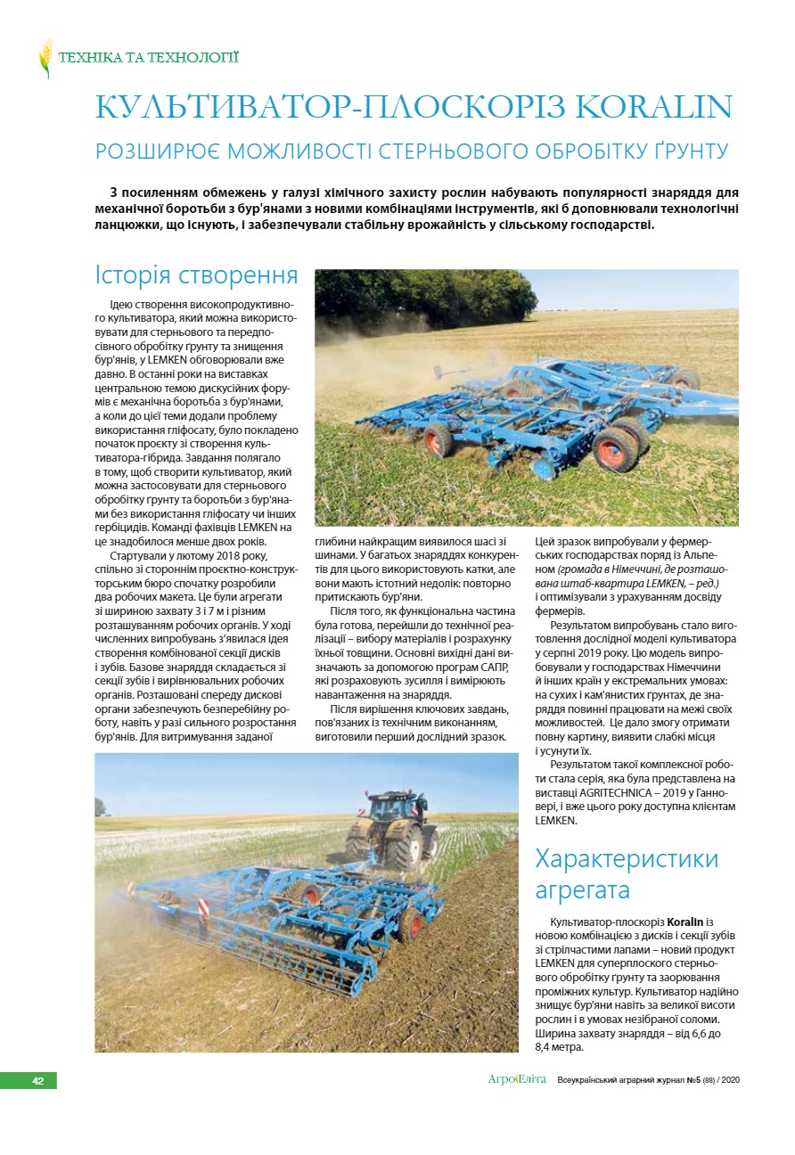 Культиватор-плоскоріз Koralin розширює можливості стерньового обробітку ґрунту