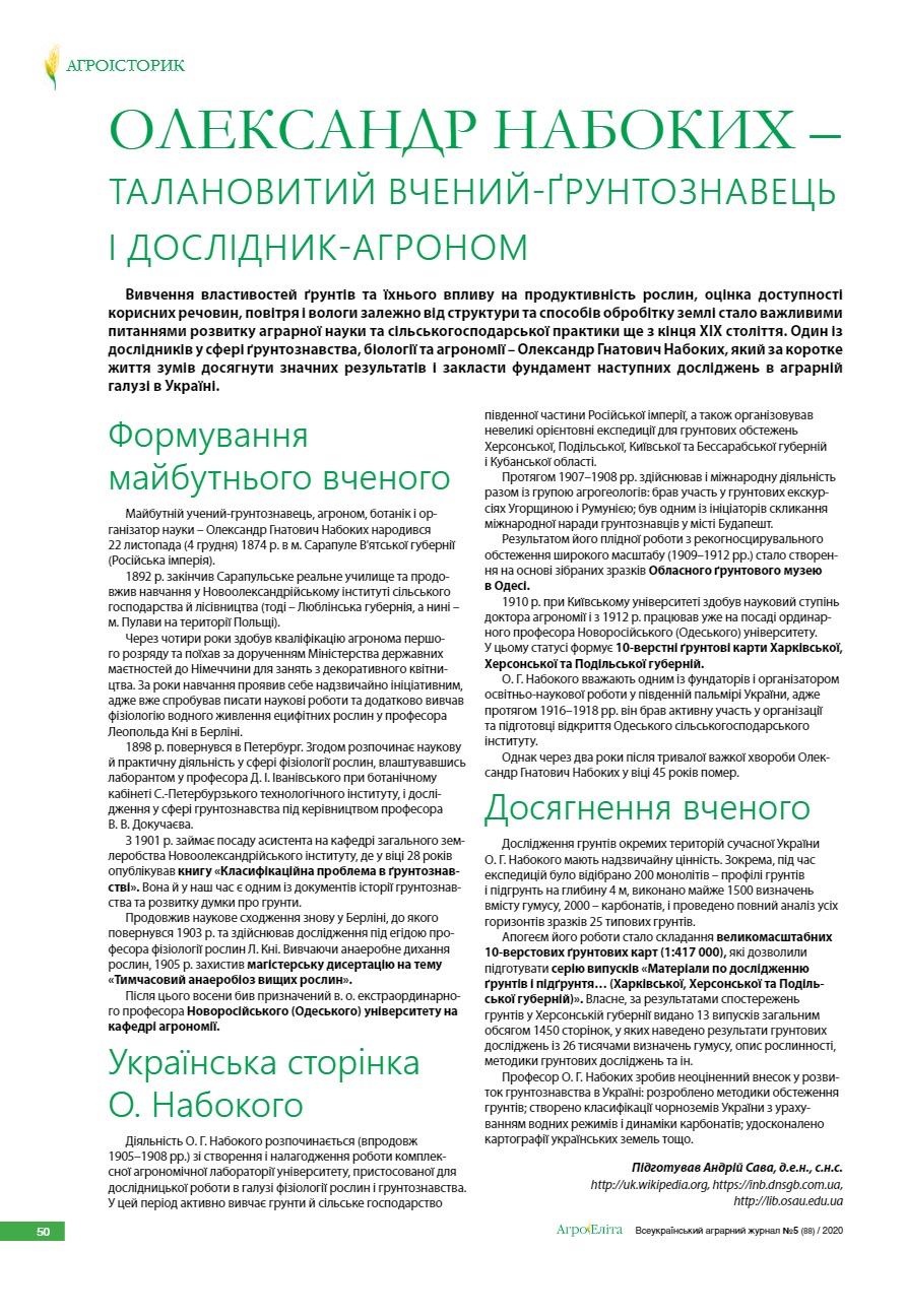 Олександр Набоких – талановитий вчений-ґрунтознавець і дослідник-агроном