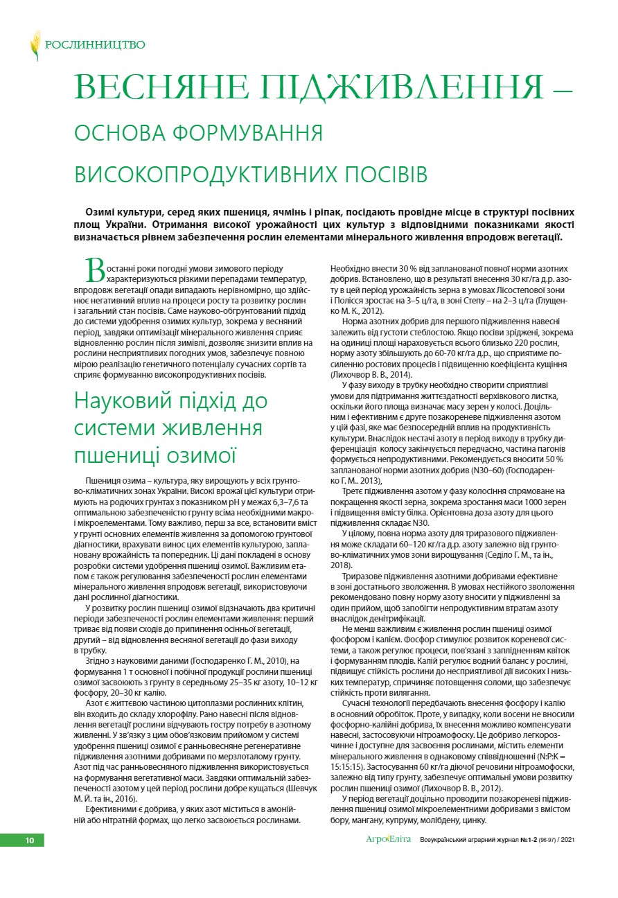 Весняне підживлення – основа формування високопродуктивних посівів
