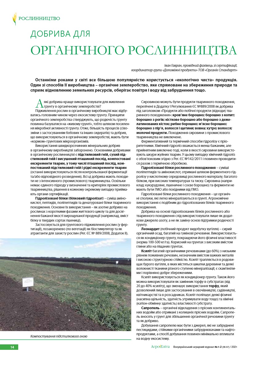 Добрива для органічного рослинництва