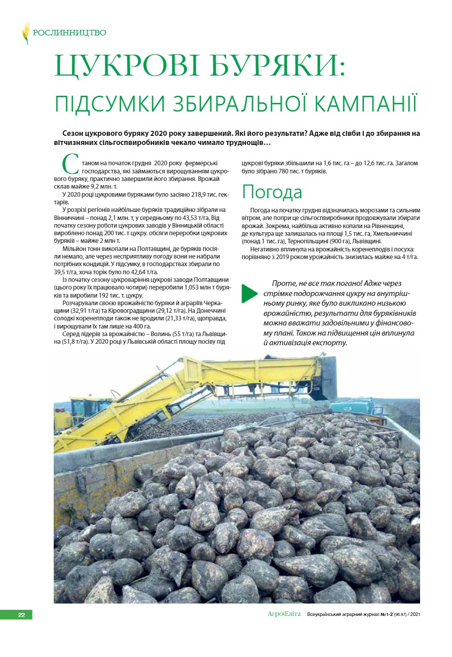 Цукрові буряки: підсумки збиральної кампанії