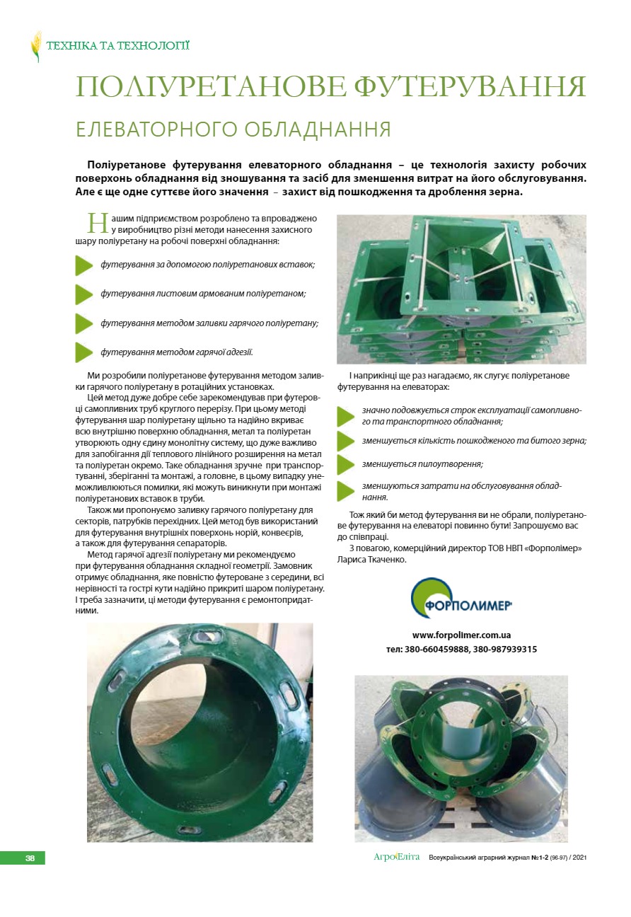 Поліуретанове футерування елеваторного обладнання