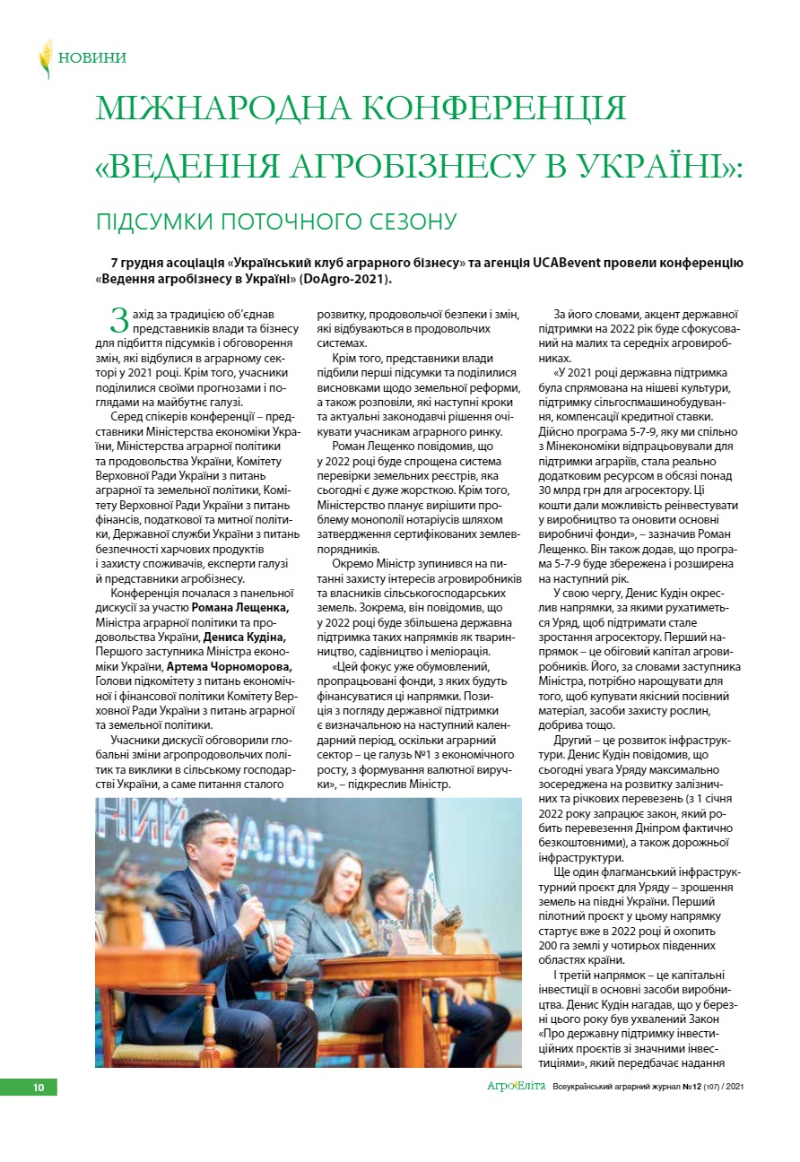 Міжнародна конференція «Ведення агробізнесу в Україні»: підсумки поточного сезону