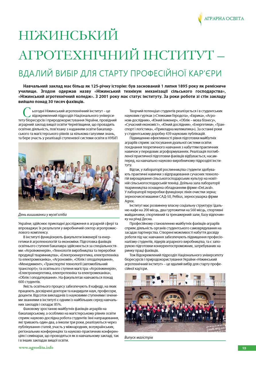 Ніжинський агротехнічний інститут – вдалий вибір для старту професійної кар’єри