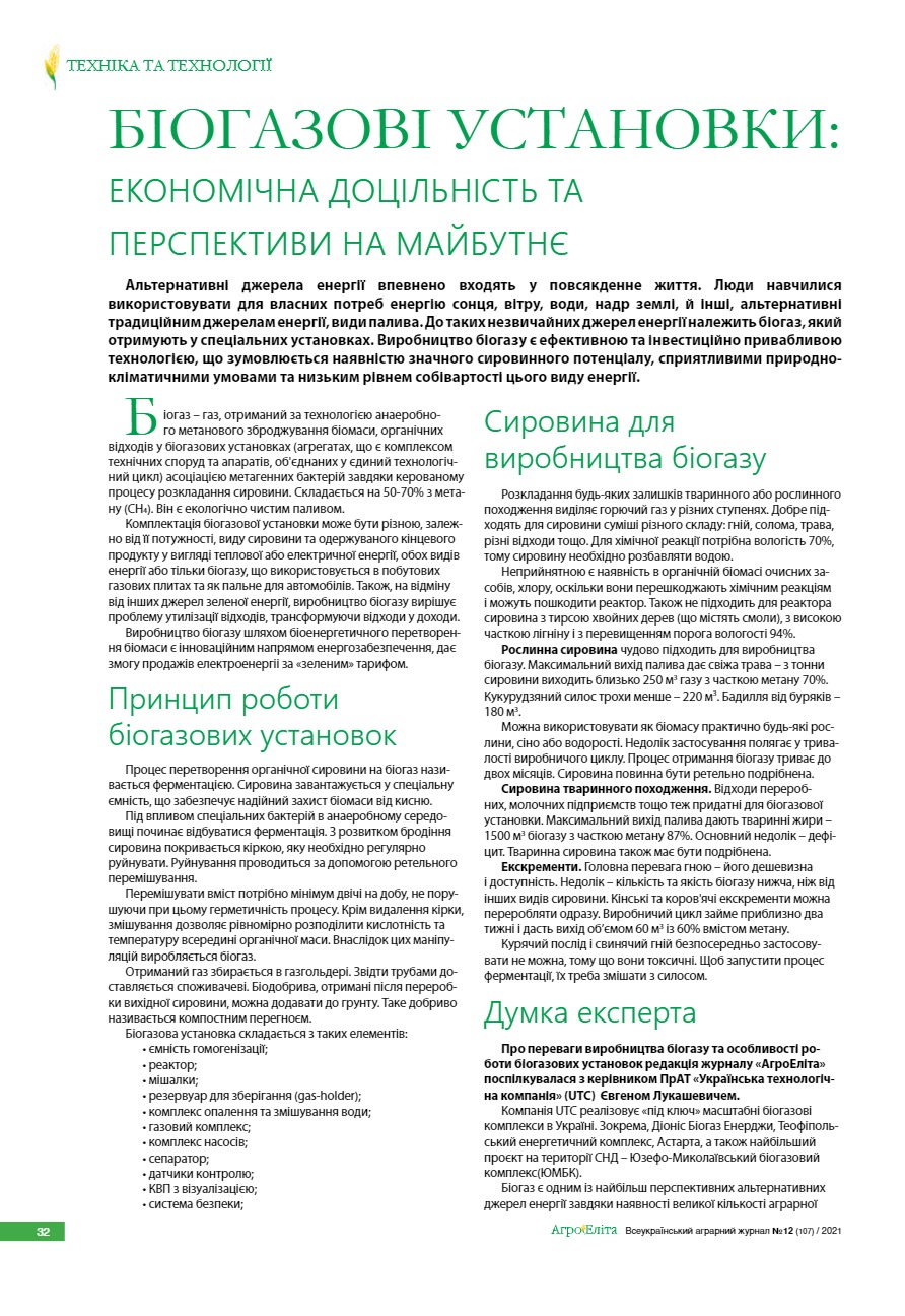 Біогазові установки: економічна доцільність та перспективи на майбутнє