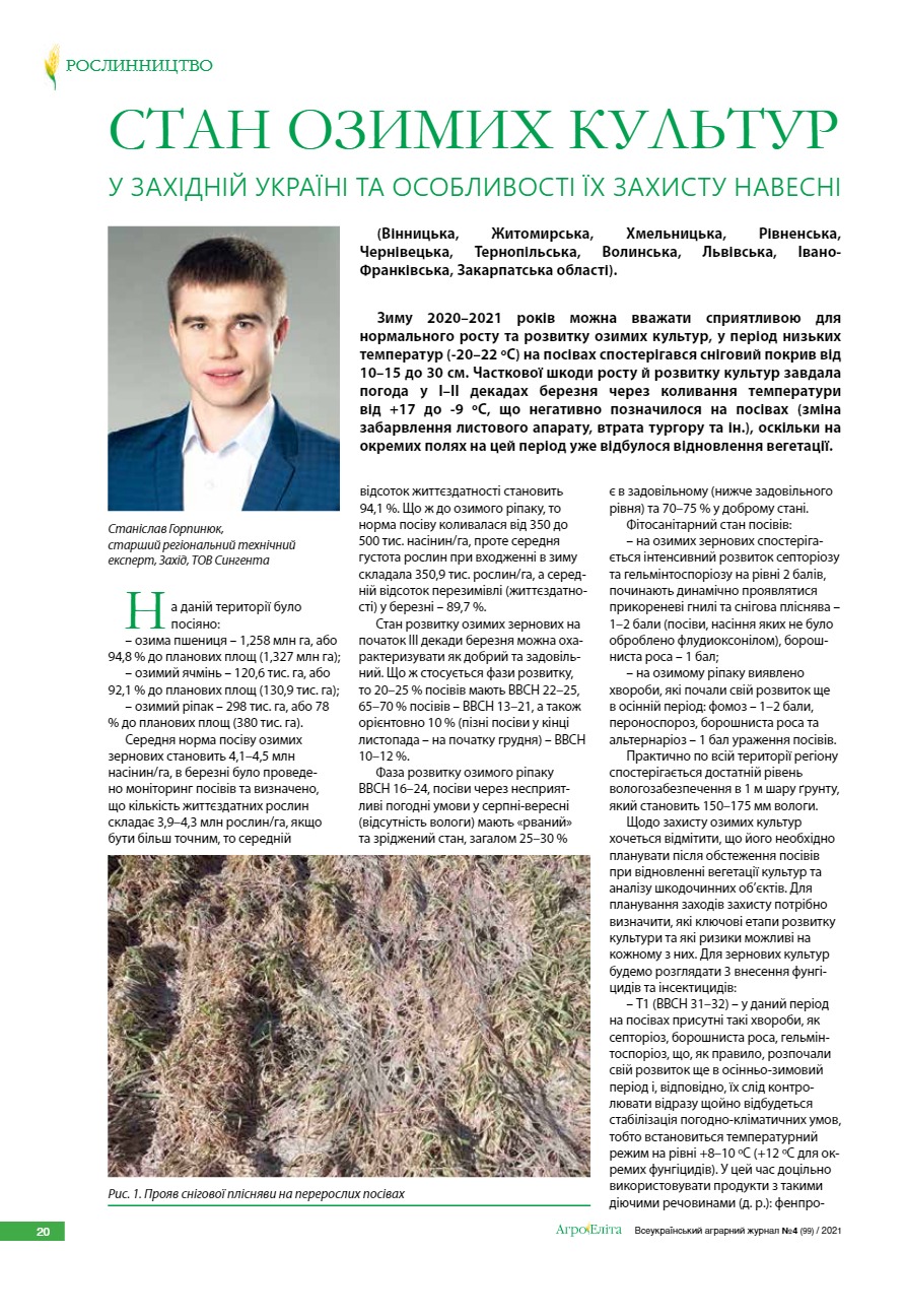 Стан озимих культур у Західній Україні та особливості їх захисту навесні