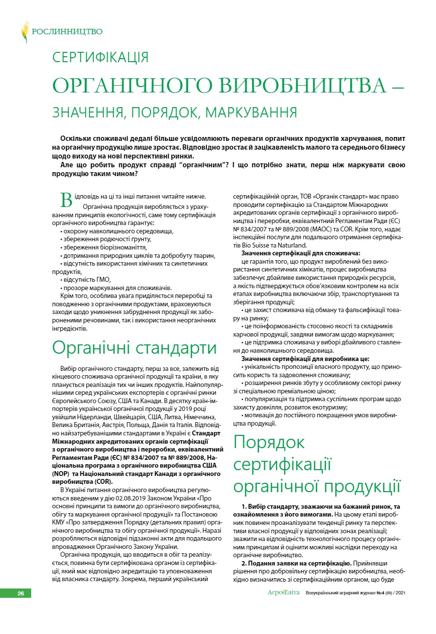Сертифікація органічного виробництва – значення, порядок, маркування