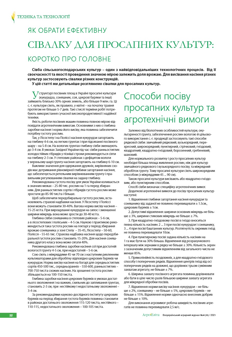 Як обрати ефективну сівалку для просапних культур: коротко про головне