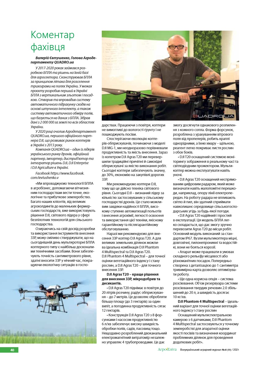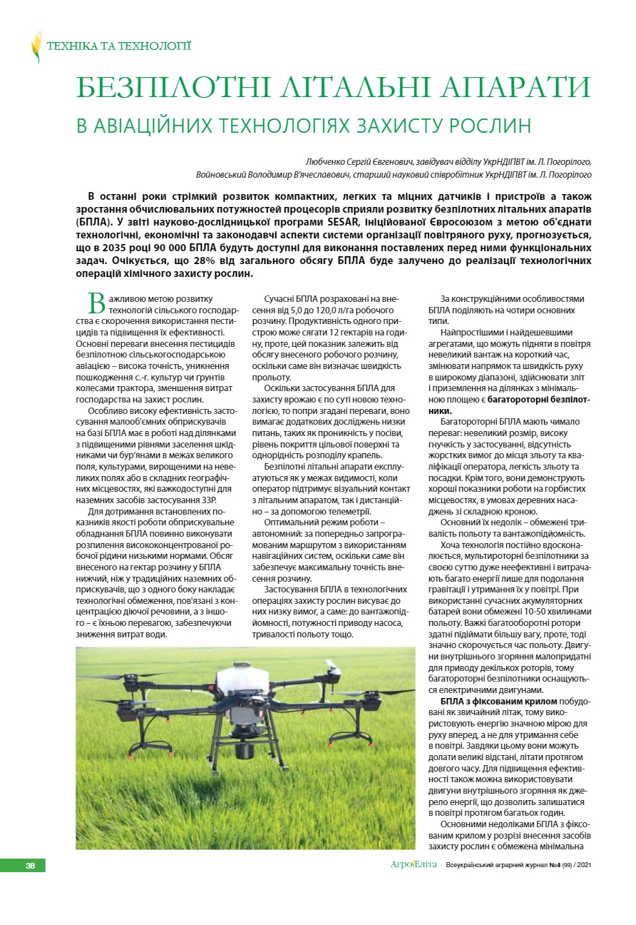 Безпілотні літальні апарати в авіаційних технологіях захисту рослин