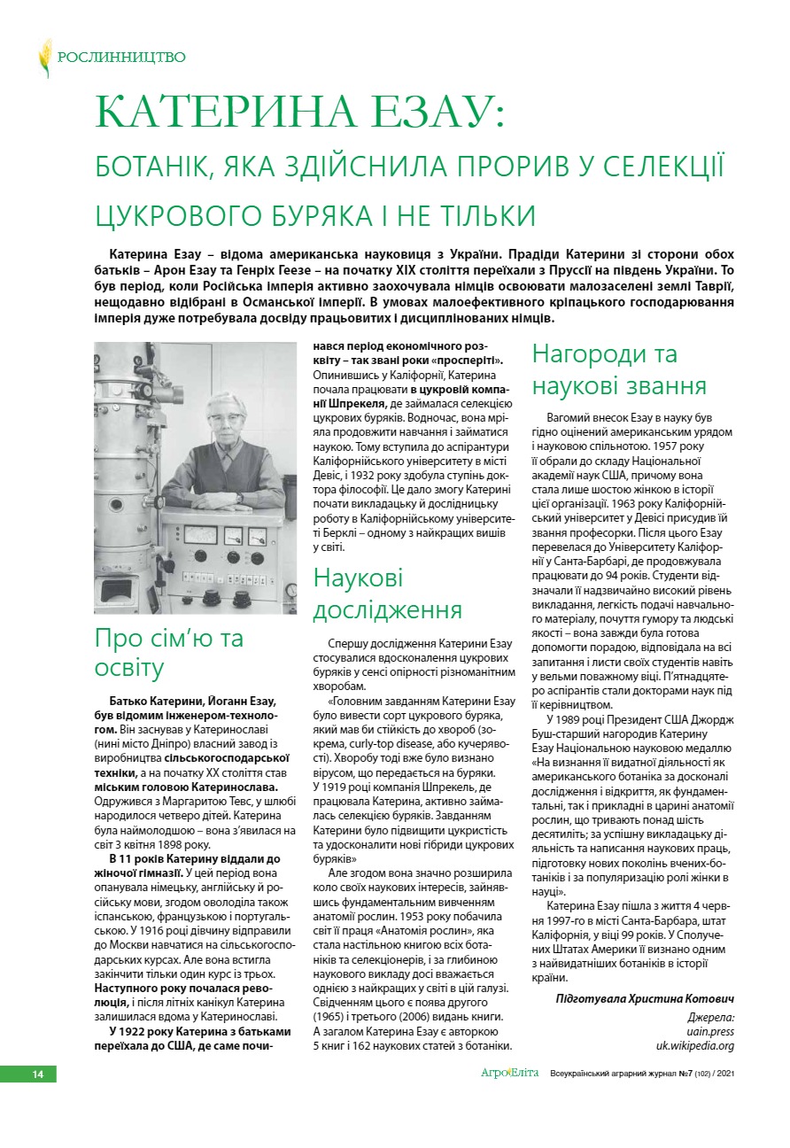 Катерина Езау: ботанік, яка здійснила прорив у селекції цукрового буряка і не тільки