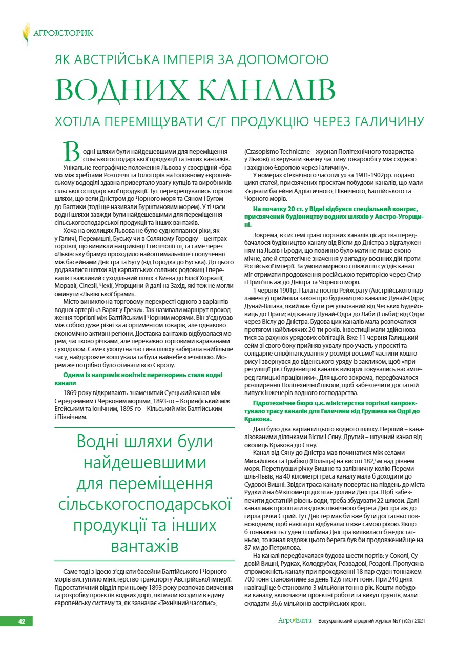 Як Австрійська імперія за допомогою водних каналів хотіла переміщувати с/г продукцію через Галичину
