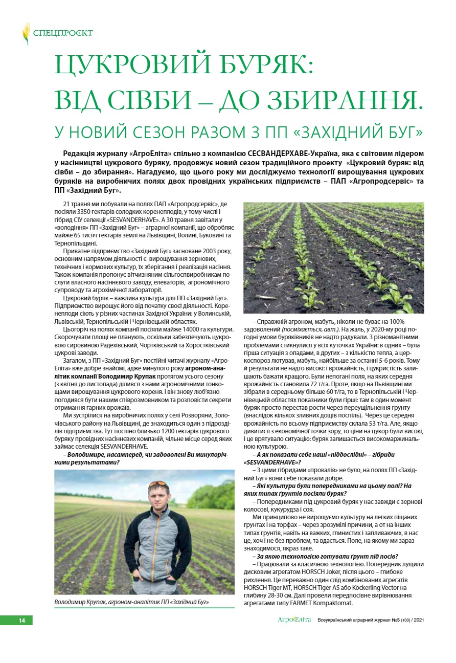 Цукровий буряк: від сівби – до збирання. У новий сезон разом з ПП «Західний Буг»