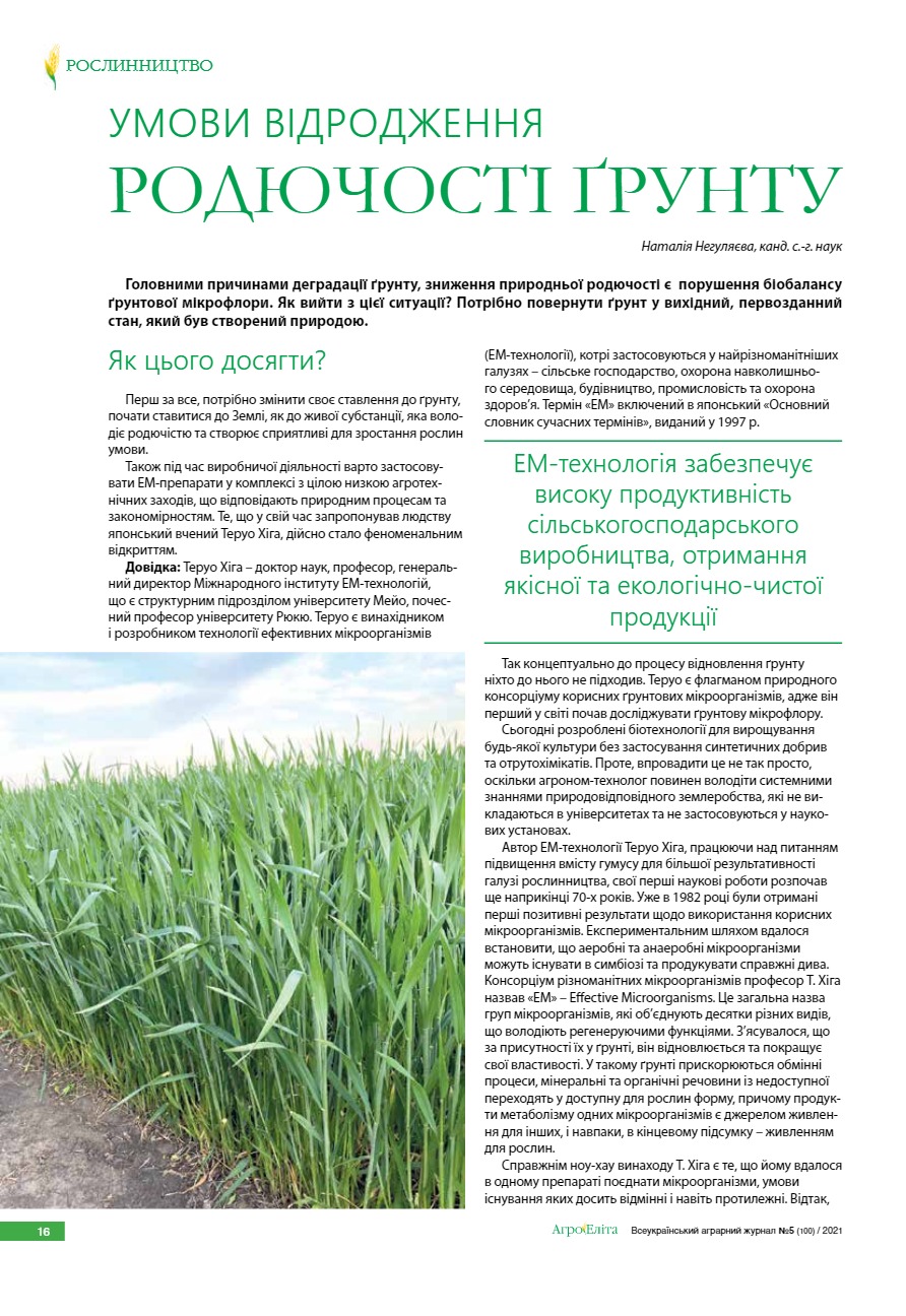 Умови відродження родючості ґрунту