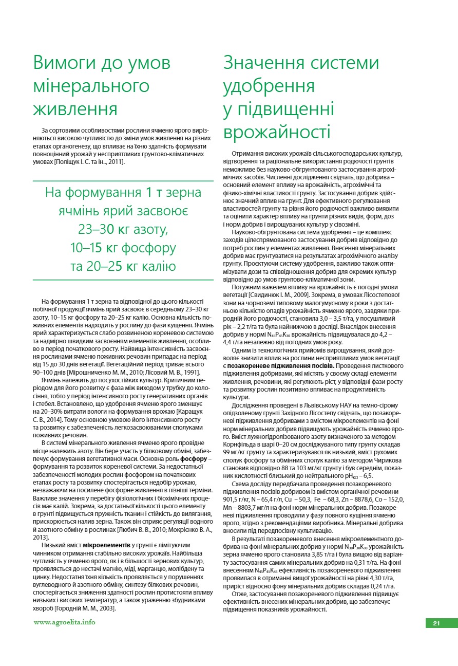 Ефективність системи удобрення для вирощування ячменю ярого