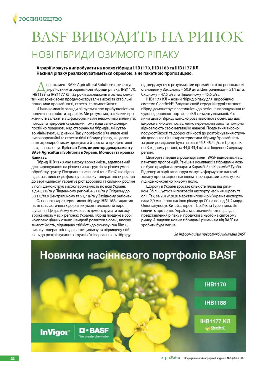 BASF виводить на ринок нові гібриди озимого ріпаку