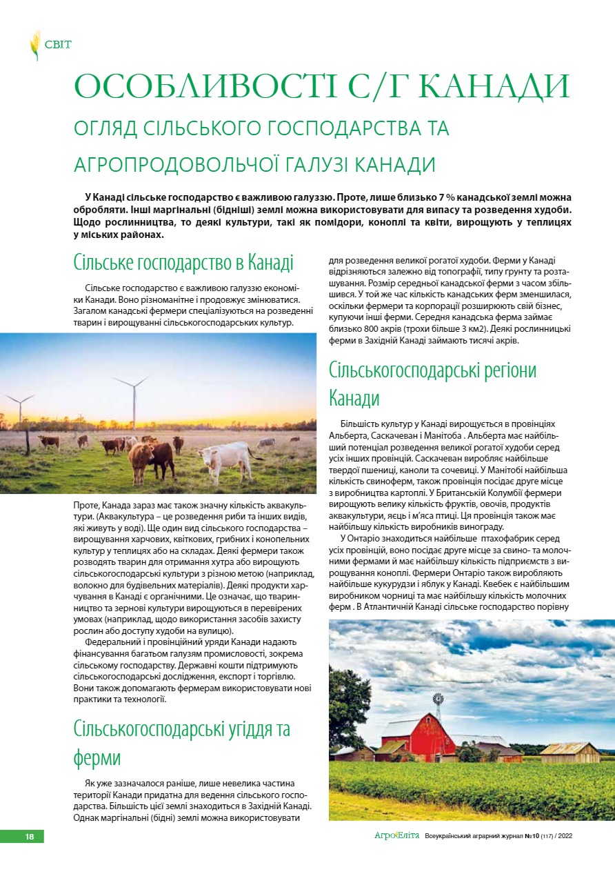 Особливості с/г Канади. Огляд сільського господарства та агропродовольчої галузі Канади