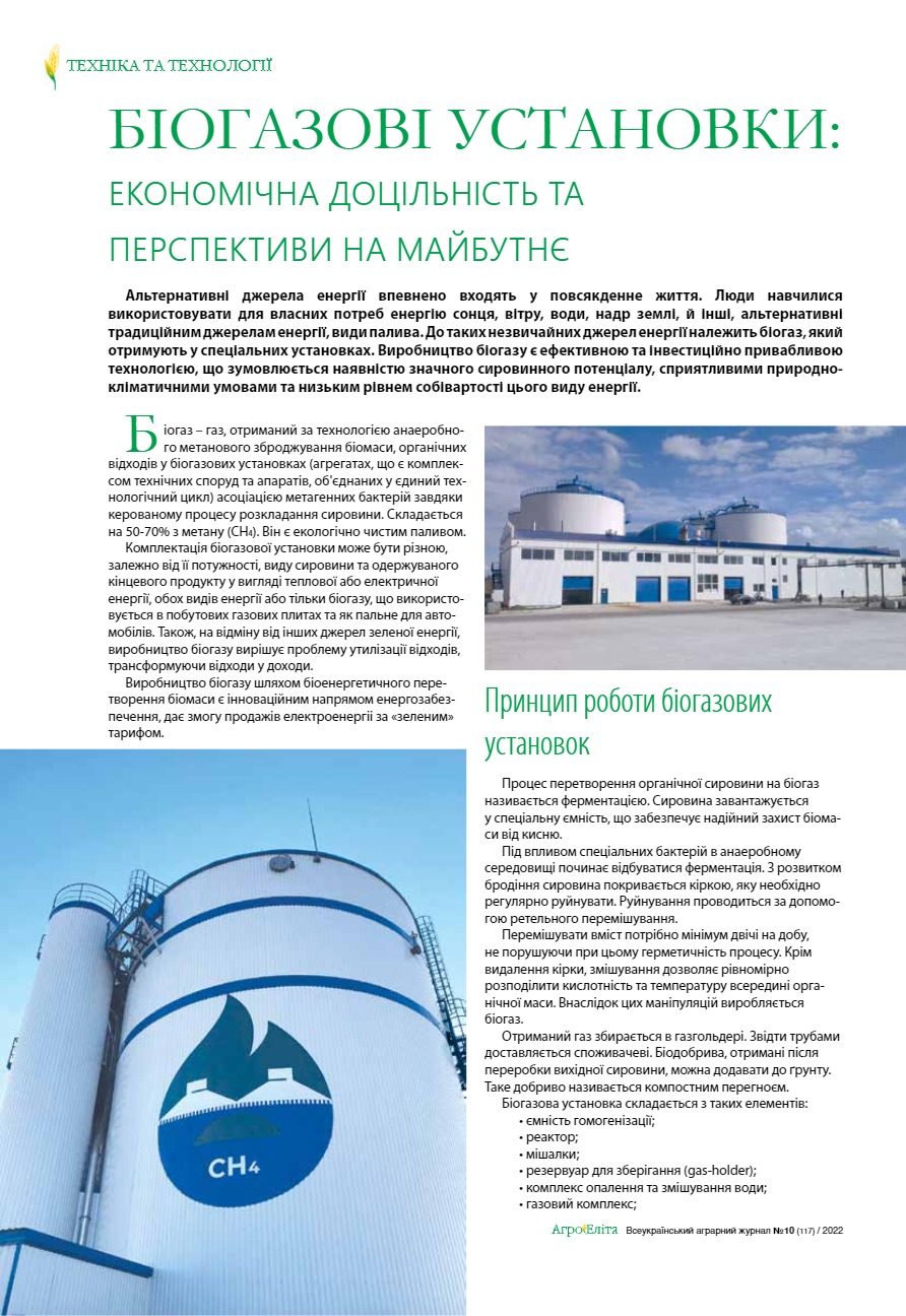 Біогазові установки: економічна доцільність та перспективи на майбутнє