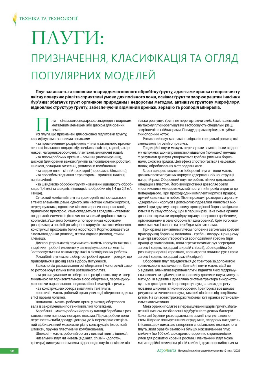 Плуги: призначення, класифікація та огляд популярних моделей