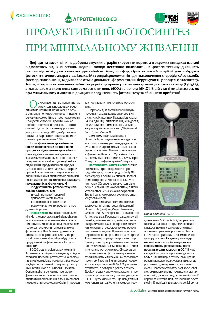 Продуктивний фотосинтез при мінімальному живленні