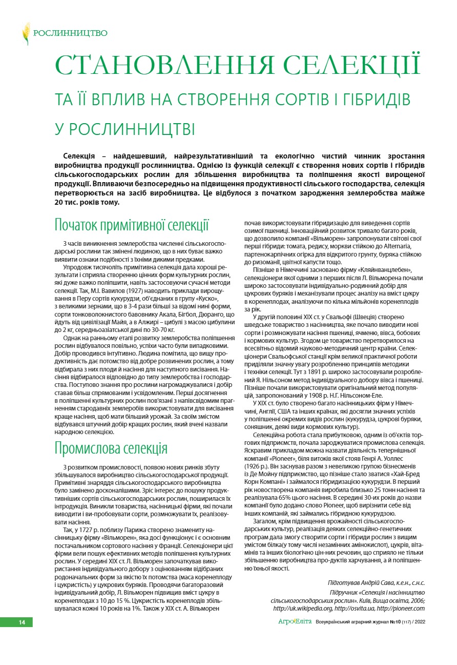 Становлення селекції та її вплив на створення сортів і гібридів у рослинництві