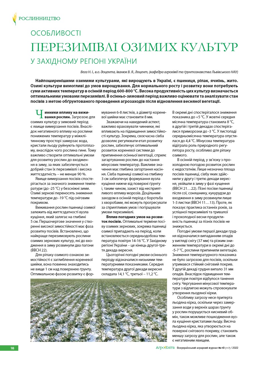 Особливості перезимівлі озимих культур у Західному регіоні України
