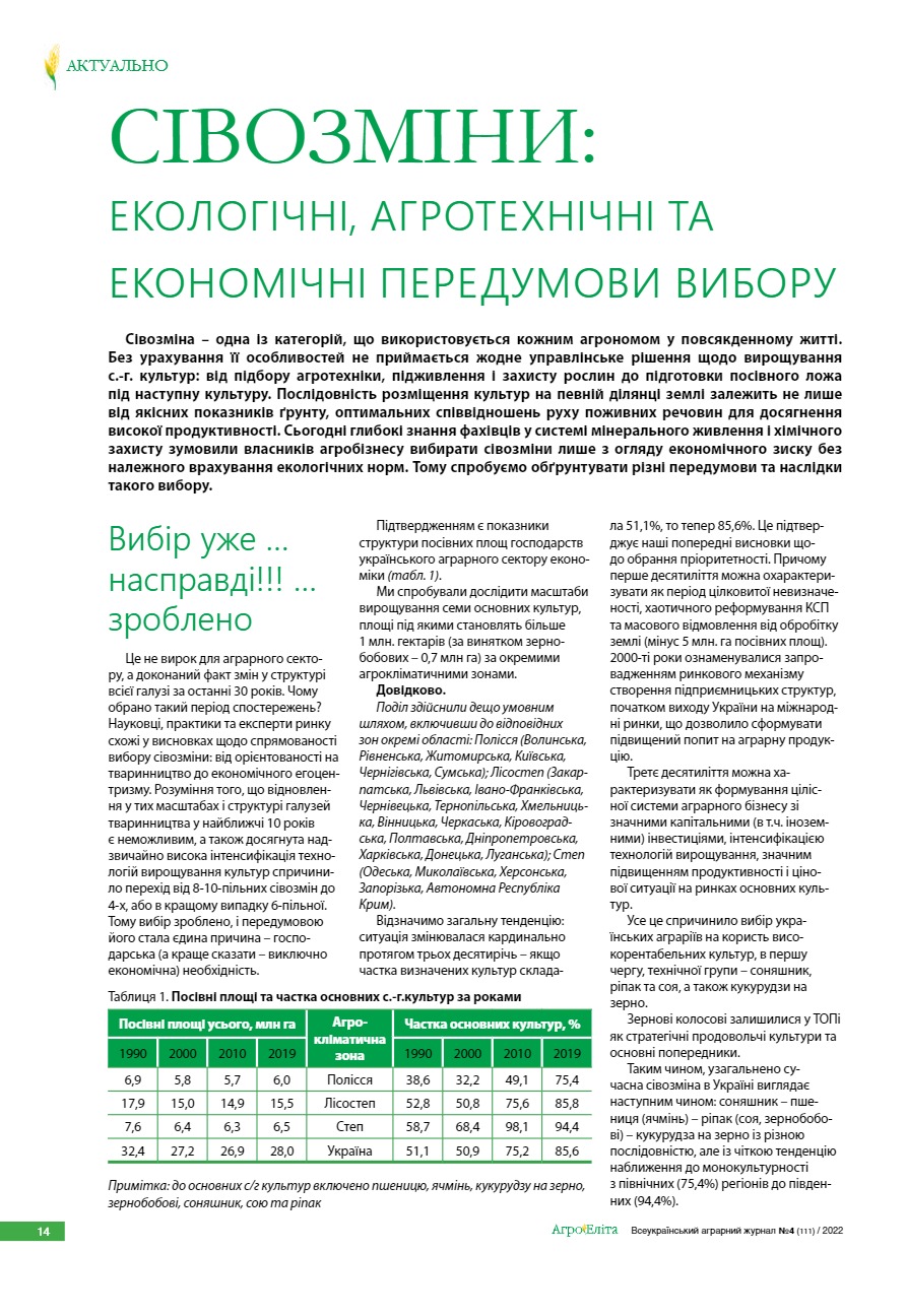 Сівозміни: екологічні, агротехнічні та економічні передумови вибору