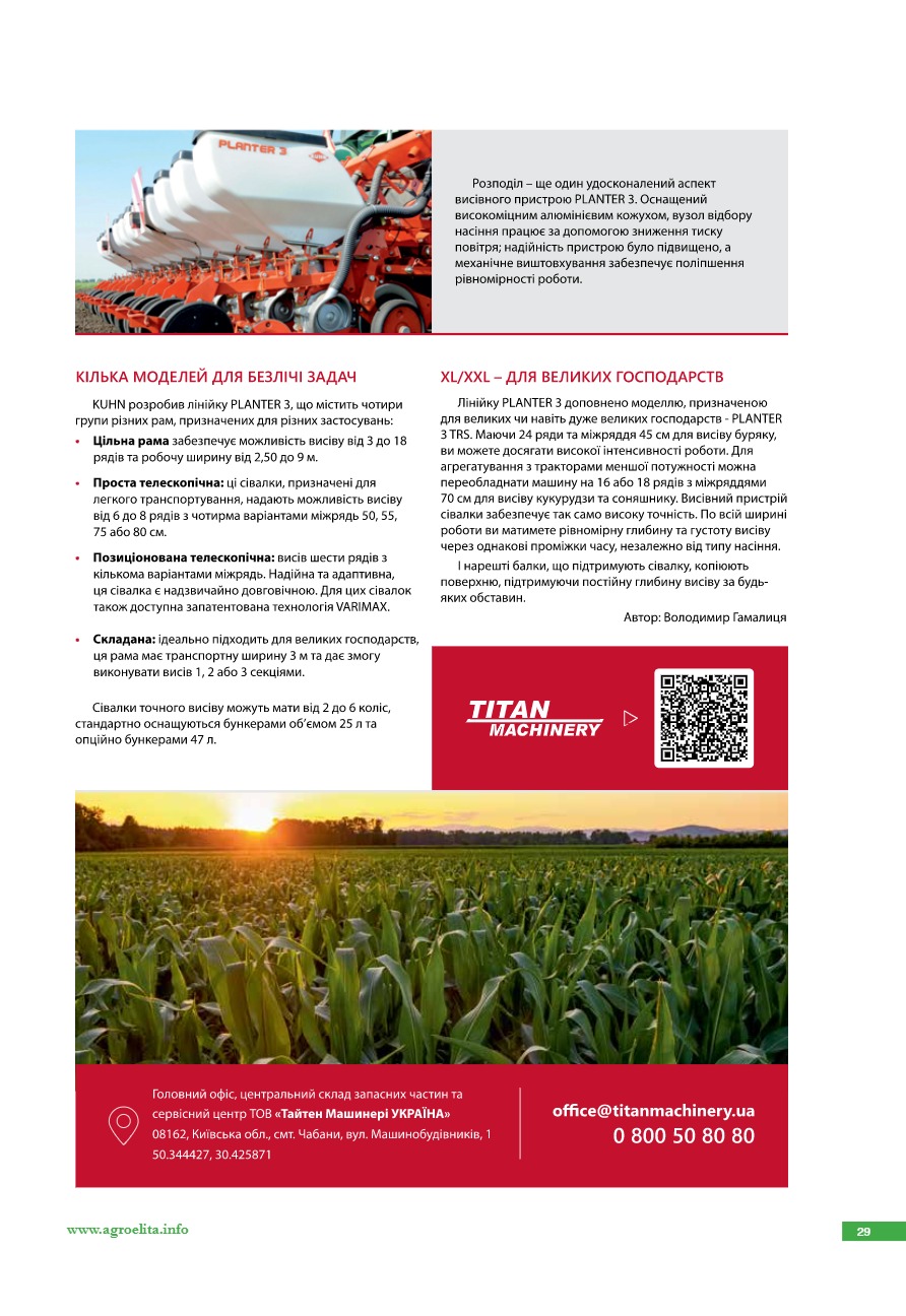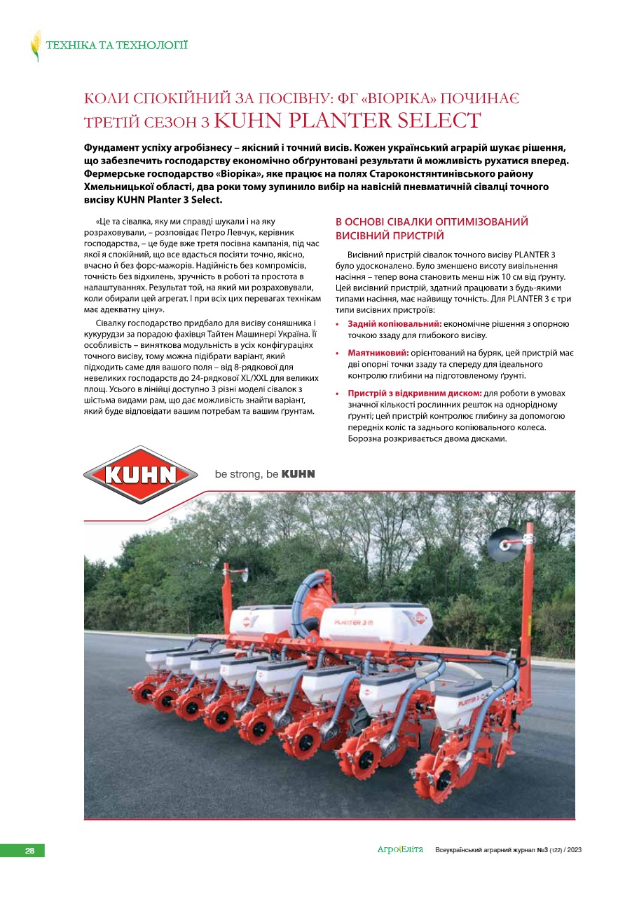 Коли спокiйний за посiвну: ФГ «Вiopiкa» починає третiй сезон з KUHN Planter Select