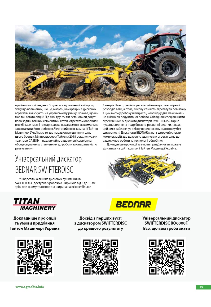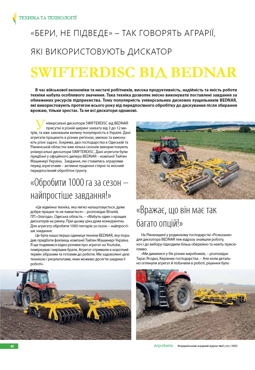 «Бери, не підведе» – так говорять аграрії, які використовують дискатор SWIFTERDISC від BEDNAR