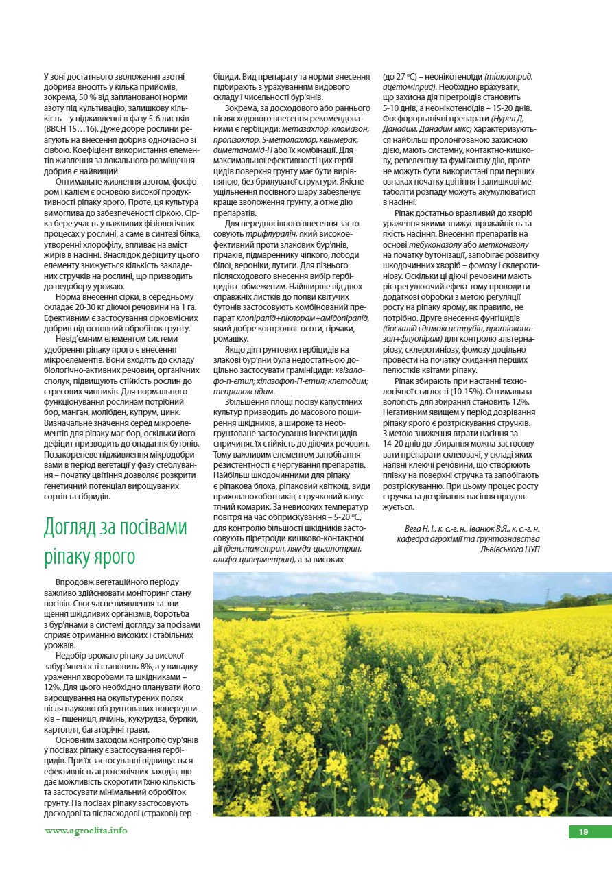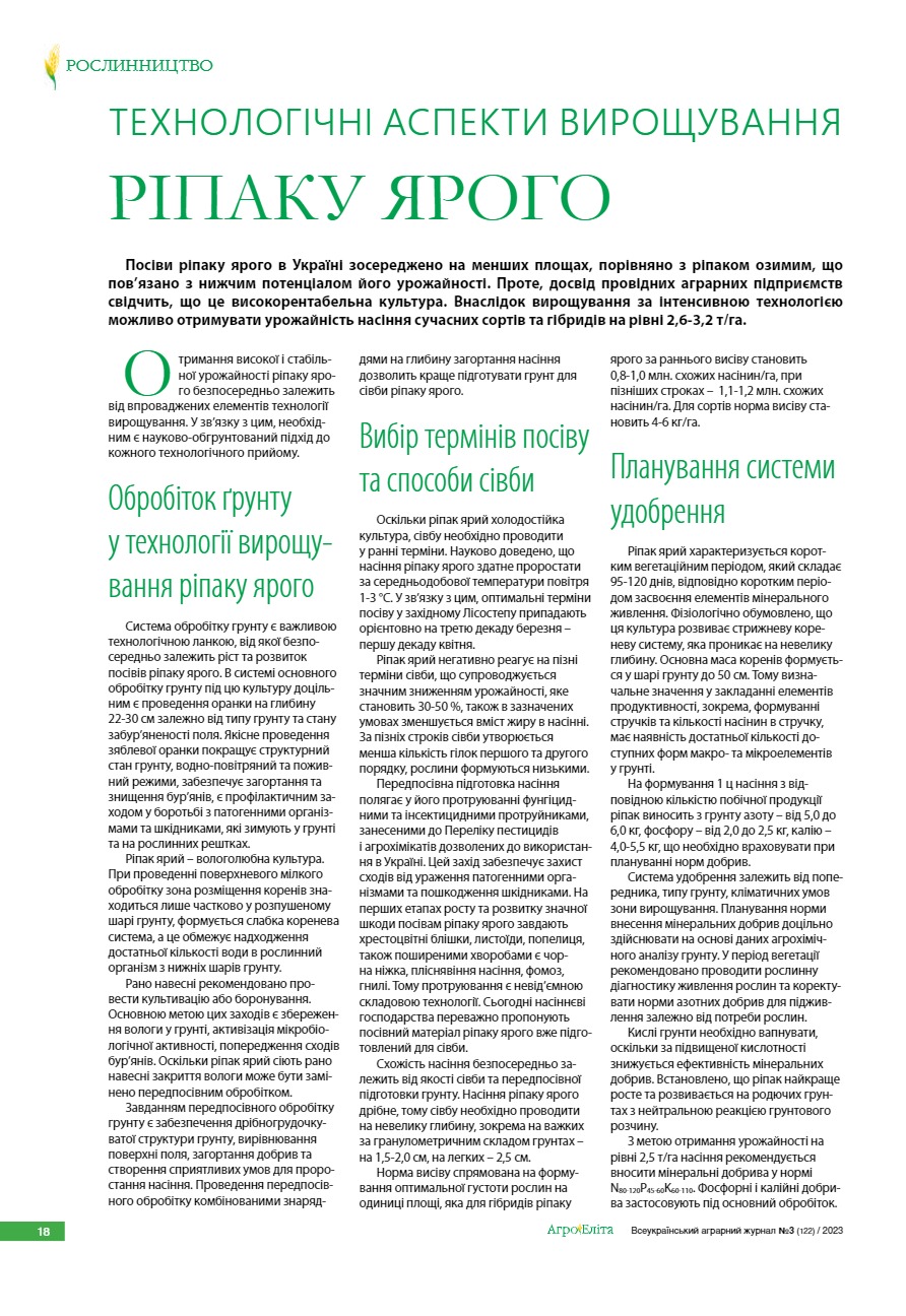 Технологічні аспекти вирощування ріпаку ярого