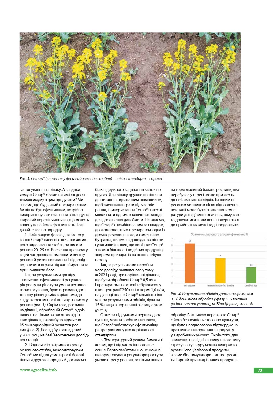 Сетар®: регуляція росту та фунгіцидний захист на ріпаку навесні – ключові аспекти