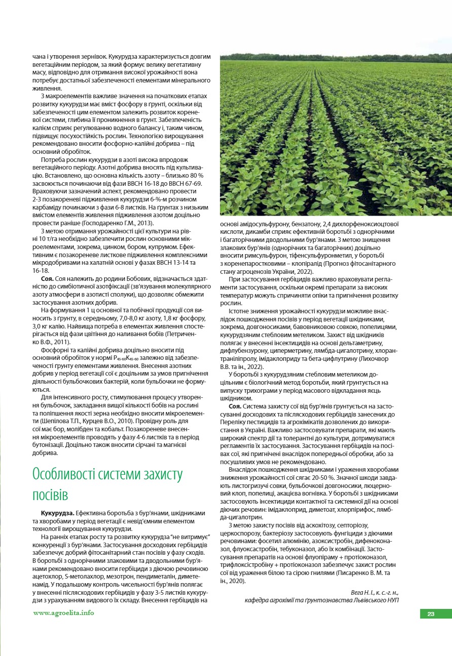 Особливості системи удобрення та захисту посівів кукурудзи та сої в період вегетації