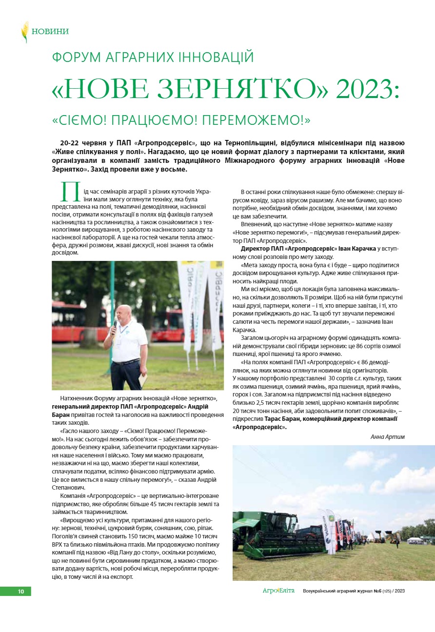 Форум аграрних інновацій «Нове Зернятко» 2023: «Сіємо! Працюємо! Переможемо!»