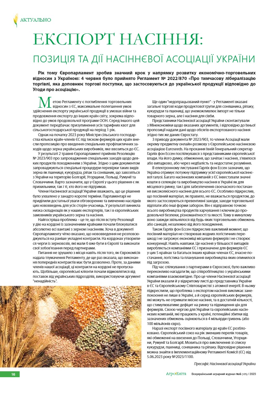 Експорт насіння: позиція та дії Насіннєвої Асоціації України