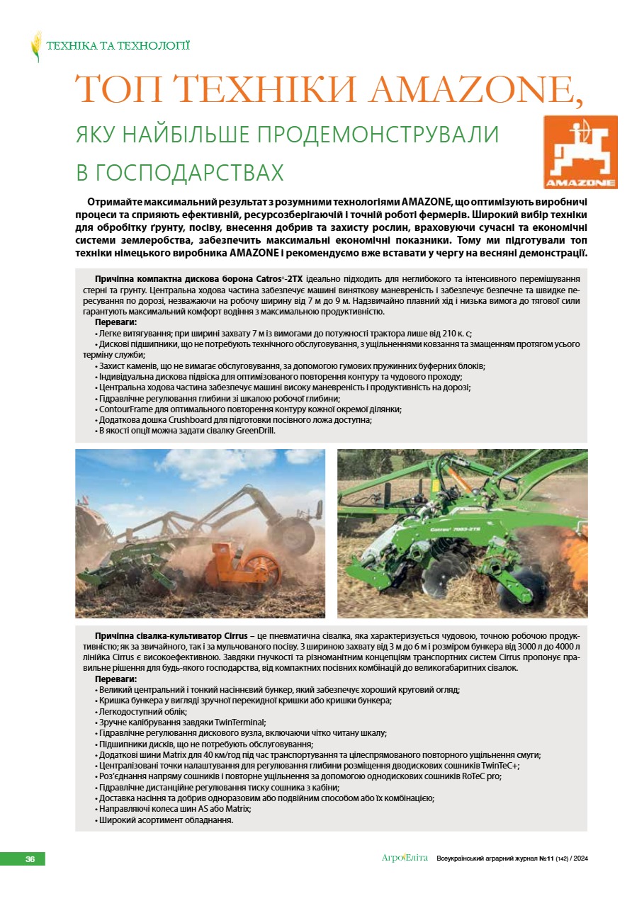 Топ техніки AMAZONE, яку найбільше продемонстрували в господарствах