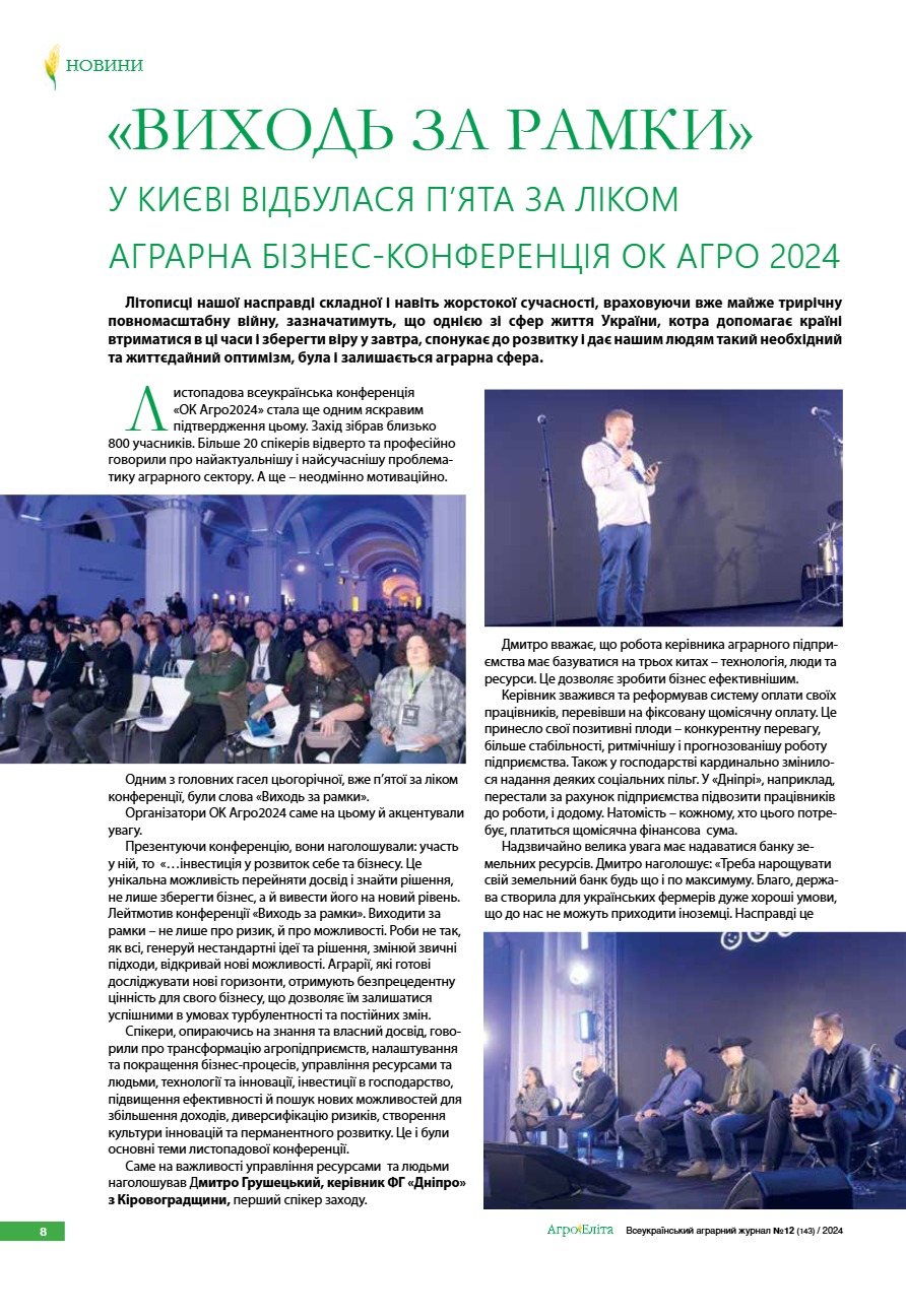 «Виходь за рамки» У Києві відбулася п’ята за ліком аграрна бізнес-конференція ОК Агро 2024