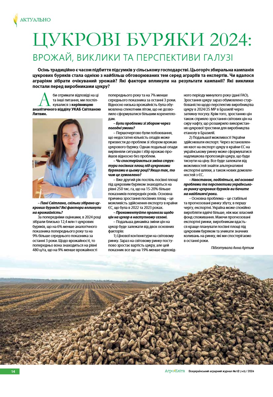 Цукрові буряки 2024: врожай, виклики та перспективи галузі