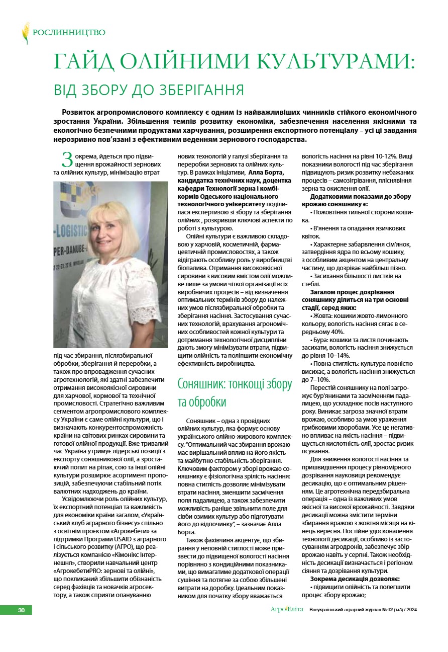 Гайд олійними культурами: від збору до зберігання
