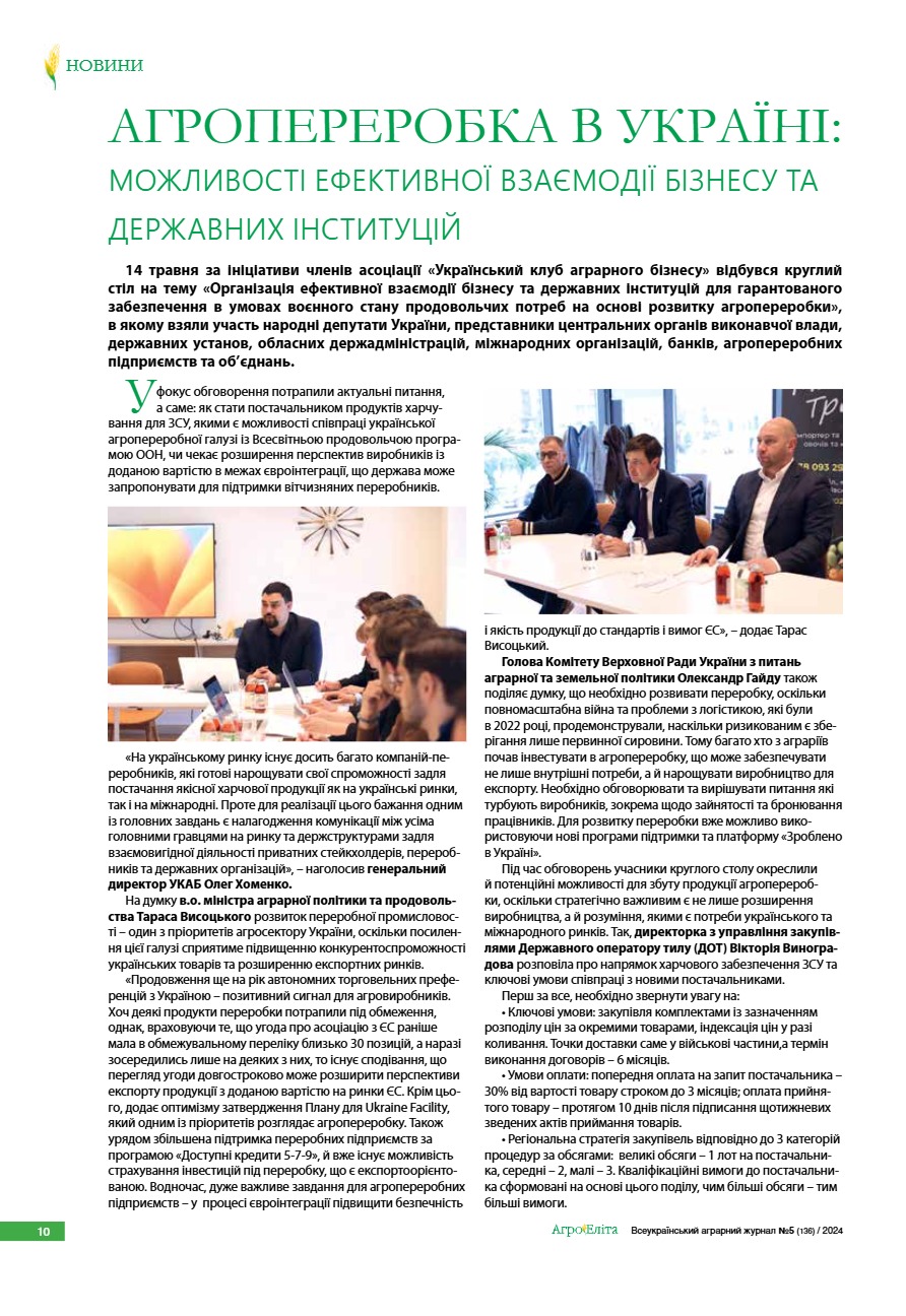 Агропереробка в Україні: можливості ефективної взаємодії бізнесу та державних інституцій