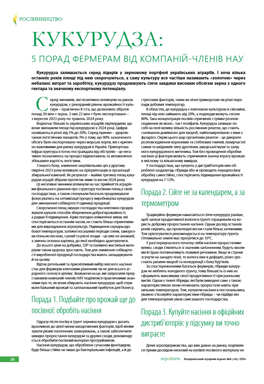 Кукурудза: 5 порад фермерам від компаній-членів НАУ