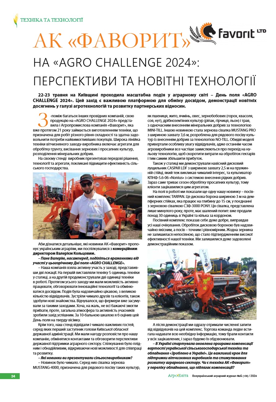 АК «Фаворит» на «AGRO CHALLENGE 2024»: перспективи та новітні технології